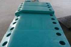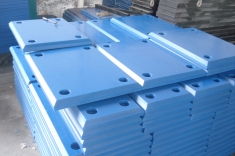 防沖板作為船舶與護舷系統之間的衝擊接觸面並覆蓋高分子塑料材料以減少摩擦,然後再輔以以鏈條或運動限制裝置來控制護舷系統的運動範圍。